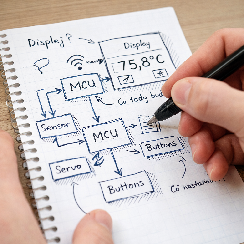 Na základě zadání navrhneme obvodové řešení zařízení. Pokud nejsou požadavky zcela jasné, pomůžeme je společně ujasnit. Používáme dostupné a perspektivní komponenty s rozumnými náklady a rezervou pro budoucí rozšíření.